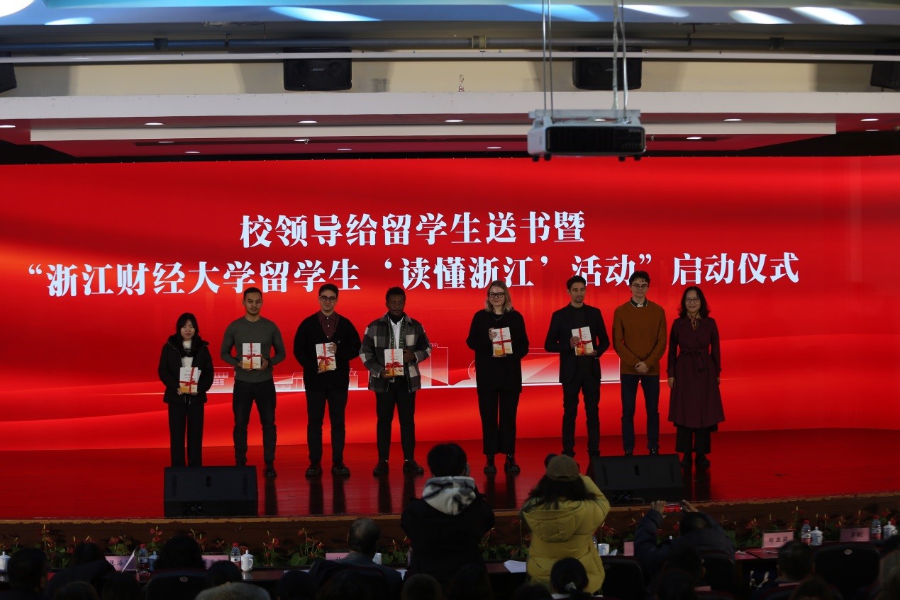活动举行了给留学生送书与留学生“读懂浙江”活动启动仪式。党委副书记、副校长(主持行政工作)魏江亲手将“读懂浙江”的留学生国情教育活动旗交到留学生手里,让留学生多走进浙江、了解浙江。郑亚莉副校长给留学生代表赠送了《之江新语(Zhejiang,China:a new vision of development)》等书籍,让留学生多读书了解中国。留学生还为日本做爱