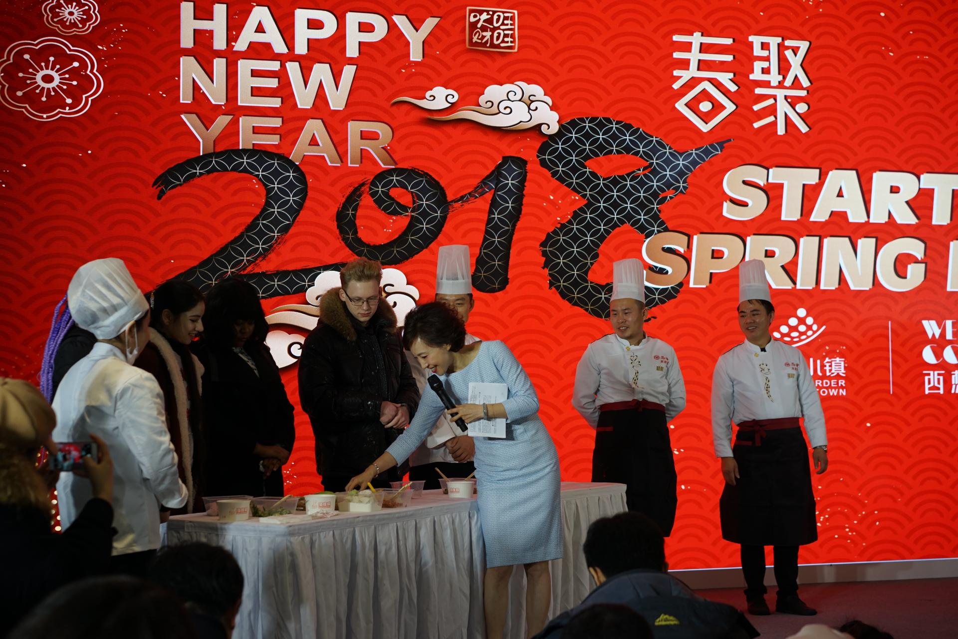 在跨贸小镇综试区展示中心举行的“春·聚”活动中,留学生们写福字、包饺子,展示书法、表演民乐,学习中国传统文化,感受身在异国的节日温暖。