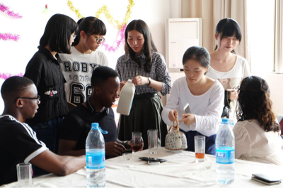 大家一起边喝茶边交流,音乐、体育、旅游、家乡……各种话题,气氛非常活跃,英文中文一起说,学生之间的距离又拉近了不少,还互相留了微信方便以后联系,在交流过程中问到考文垂学生中国大学和英国大学的区别时,他们说在英国更多的是学习,但是在中国学习过程中还有很多活动,我们告诉他们在大学里还有很多学术类比赛可以参加。文化是不分国界的,中国和英国的学生在茶文化的交流中更加了解彼此!