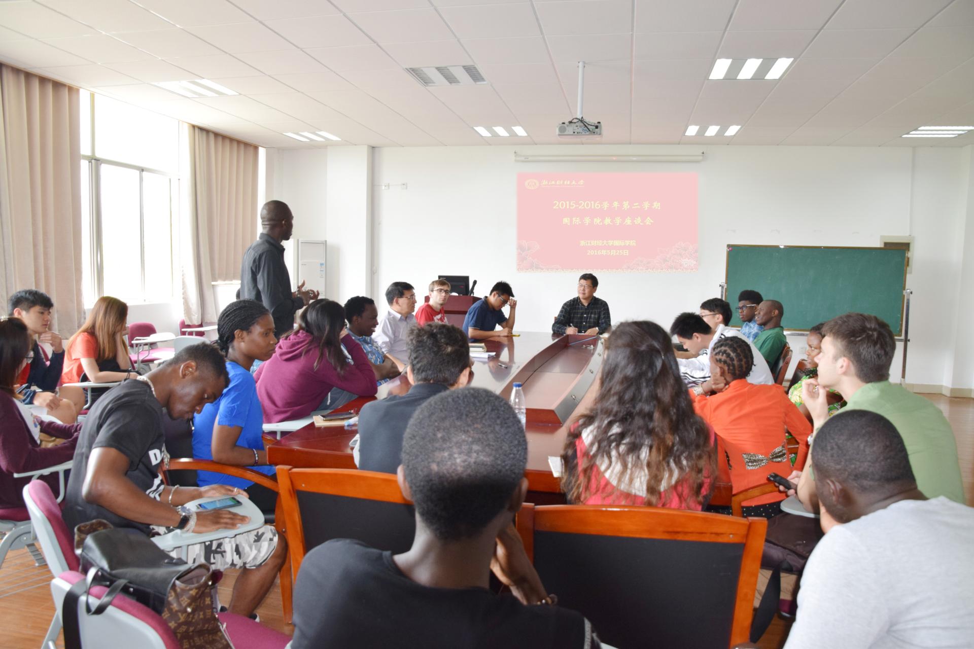 近日,日本做爱 组织留学生代表和相关教师在105会议室召开了2015-2016学年第二学期教学座谈会。此次会议由管春林副院长主持,会议主要围绕课堂教学展开,与会的留学生和教师代表畅所欲言,就教学方法、授课语言、教学排课、教学评价等情况进行了交流反馈,并提出了意见和建议。