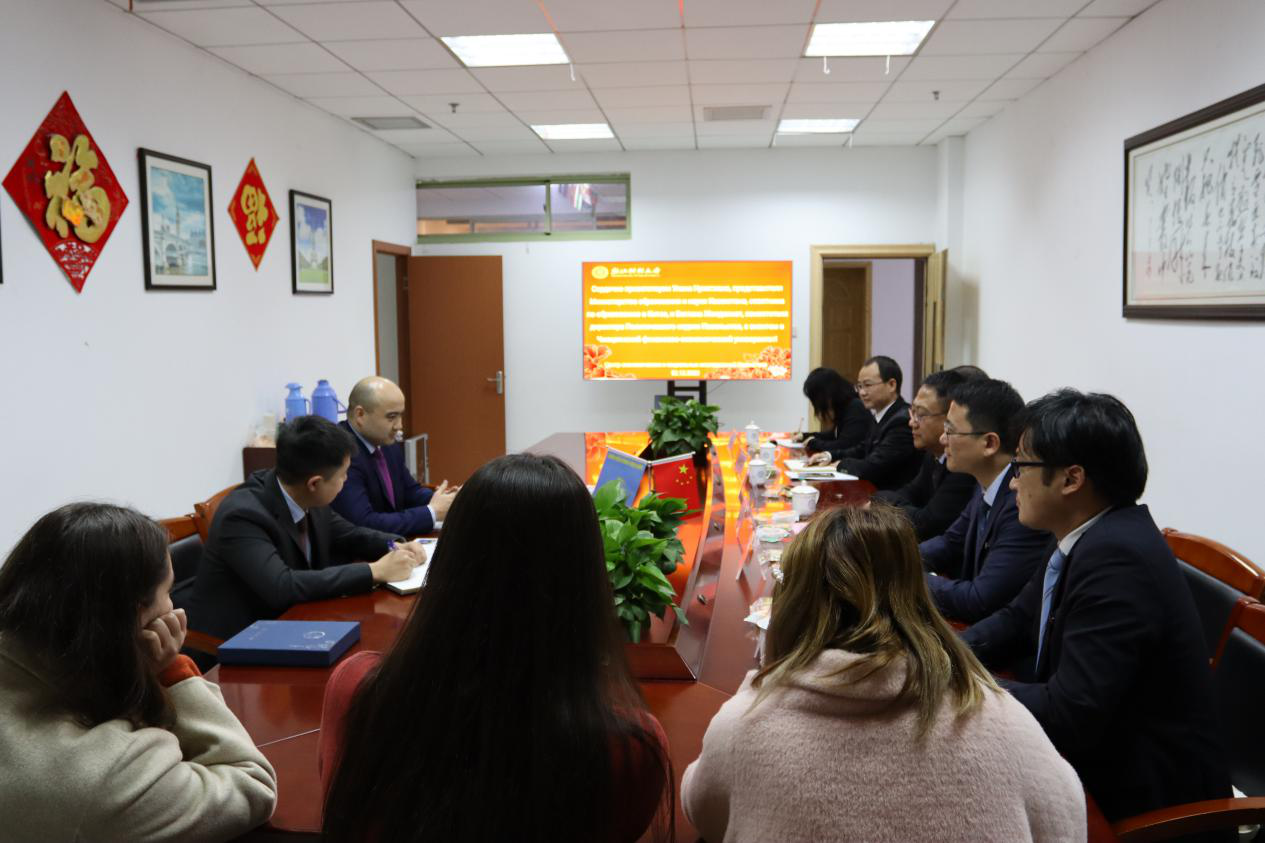 访问期间,乌兰参赞一行还亲切看望了目前在我院学习的哈国籍留学生,并与他们热情座谈,勉励他们勤奋学习,积极进步,学好本领,努力做中哈经济合作和文化交流的友好使者。