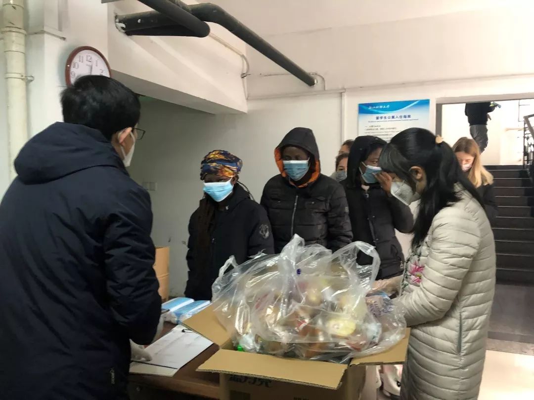 疫情发生后,校领导李金昌、钟晓敏、王奎泉、励如孟、李占荣、李永友等带队前往留学生宿舍楼,实地指导疫情防控工作,看望慰问留校学生和值班人员,详细询问防控措施落实情况和留学生的学习、生活情况,还给留学生们发放了口罩、食品、消毒液等物资。