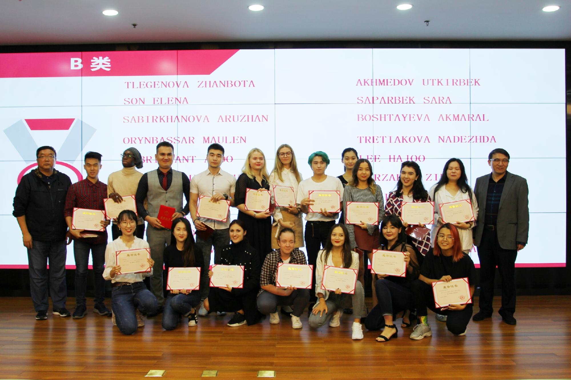 随后是激动人心的奖学金颁奖仪式。BERNARD OWUSU ADU 等5位硕士研究生获得了2018-2019学年浙江省政府A类奖学金,FEBRILIANT ALDO 等20位本科生获得了2018-2019学年浙江省政府B类奖学金。此外,AMPONSAH-MENSAH AFIA OWUSUA 和KONE SALIF获得了体育之星单项奖;ZHALELOV ZHALGAS、TANDIA TAMBA 和ALEXANDROVA YEKATERINA获得了活动之星单项奖;EL KHATTABI BASMA、SAMUEL KOFI ANNOH MCCARTHY和NORMIRZAEV SHOHRUH获得了创新创业之星单项奖;TAA-ERE LOUIS和FILINOVA ANNA获得了优秀班干部单项奖;余慕鸿院长、李汉强副院长上台为各位获奖学生颁发了荣誉证书。