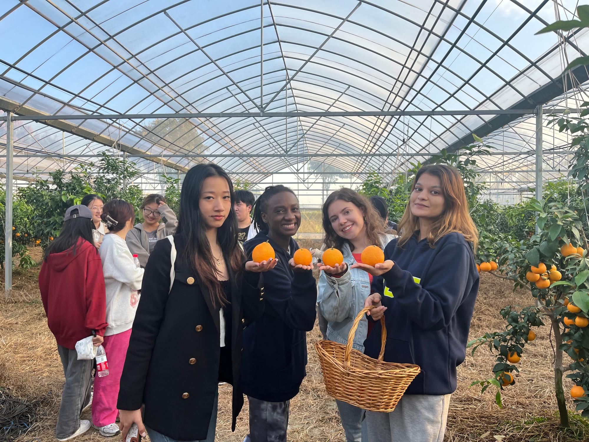 随后,师生们前往西堡村湖羊文化馆和红美人种植基地。成片的柑橘树上,只只果型匀称、色泽光亮的“红美人”柑橘挂满了枝头,农场里弥漫着诱人的香味,大家走进大棚体验采摘果实的乐趣,时不时传来阵阵欢声笑语。