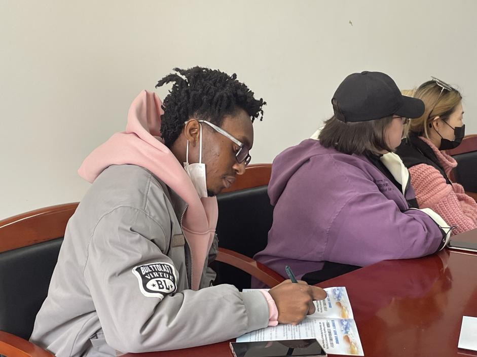 副院长赵倩主讲,部分留学生辅导员和来自哈萨克斯坦、俄罗斯、摩洛哥等国的境内国际学生代表参加。