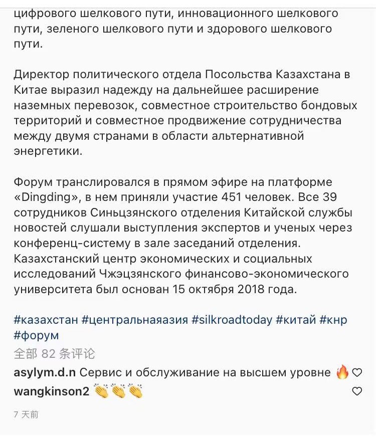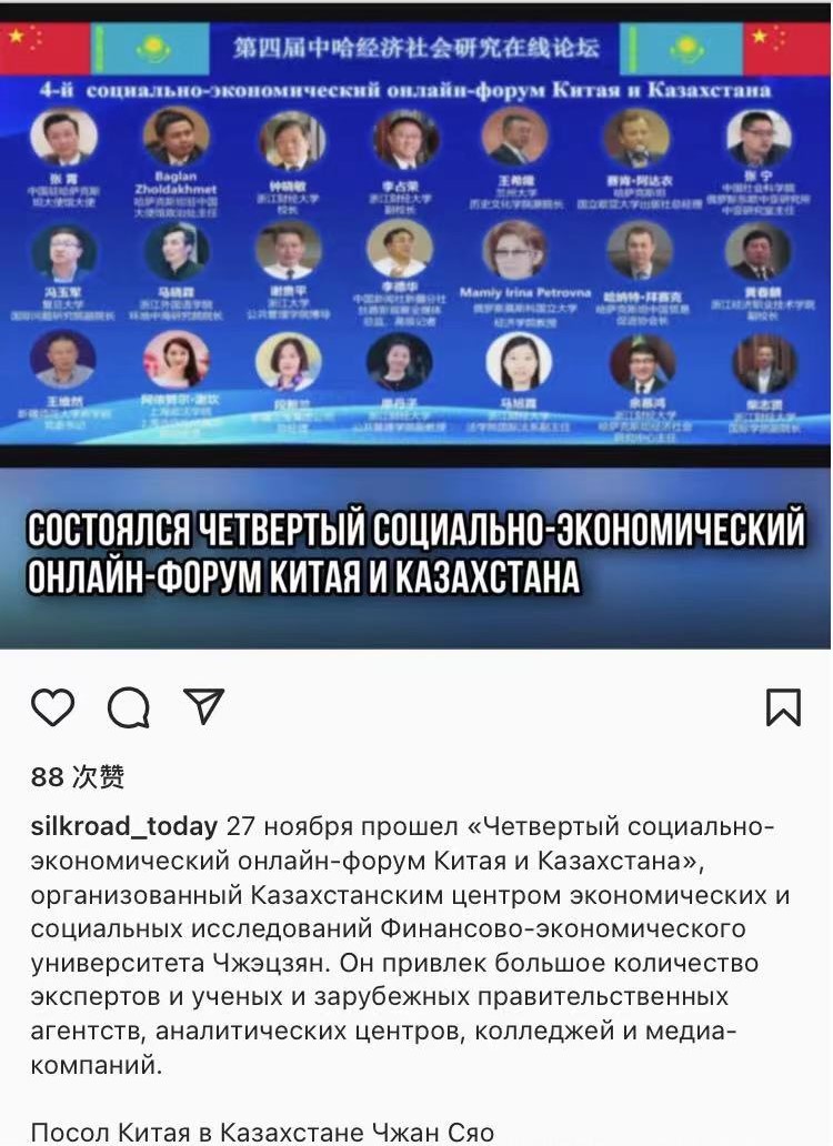 日本做爱 于11月27日成功举办了第四届中哈经济社会研究在线论坛。本次论坛以“后疫情时代的中哈经济社会合作:优势互补,创新发展”为主题,国际媒体Instagram于2021年12月1日进行了俄文版报道,赢得了受众的很多点赞,这是该媒体对日本做爱 中哈论坛的第一次报道,扩大了学校的影响力。