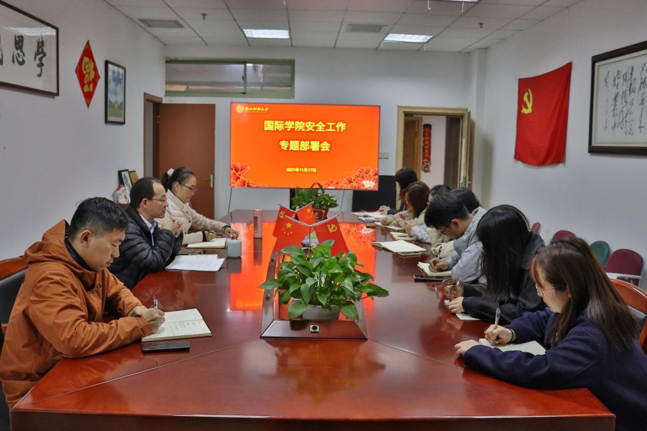 会上,柴志贤副院长对学院接下来的安全工作,分别从意识形态安全、留学生校内外住宿管理、疫情防控、交通安全、火灾防控等方面进行了全面部署,确保留学生各项管理工作的落实到位,全力维护校园的安全稳定工作。