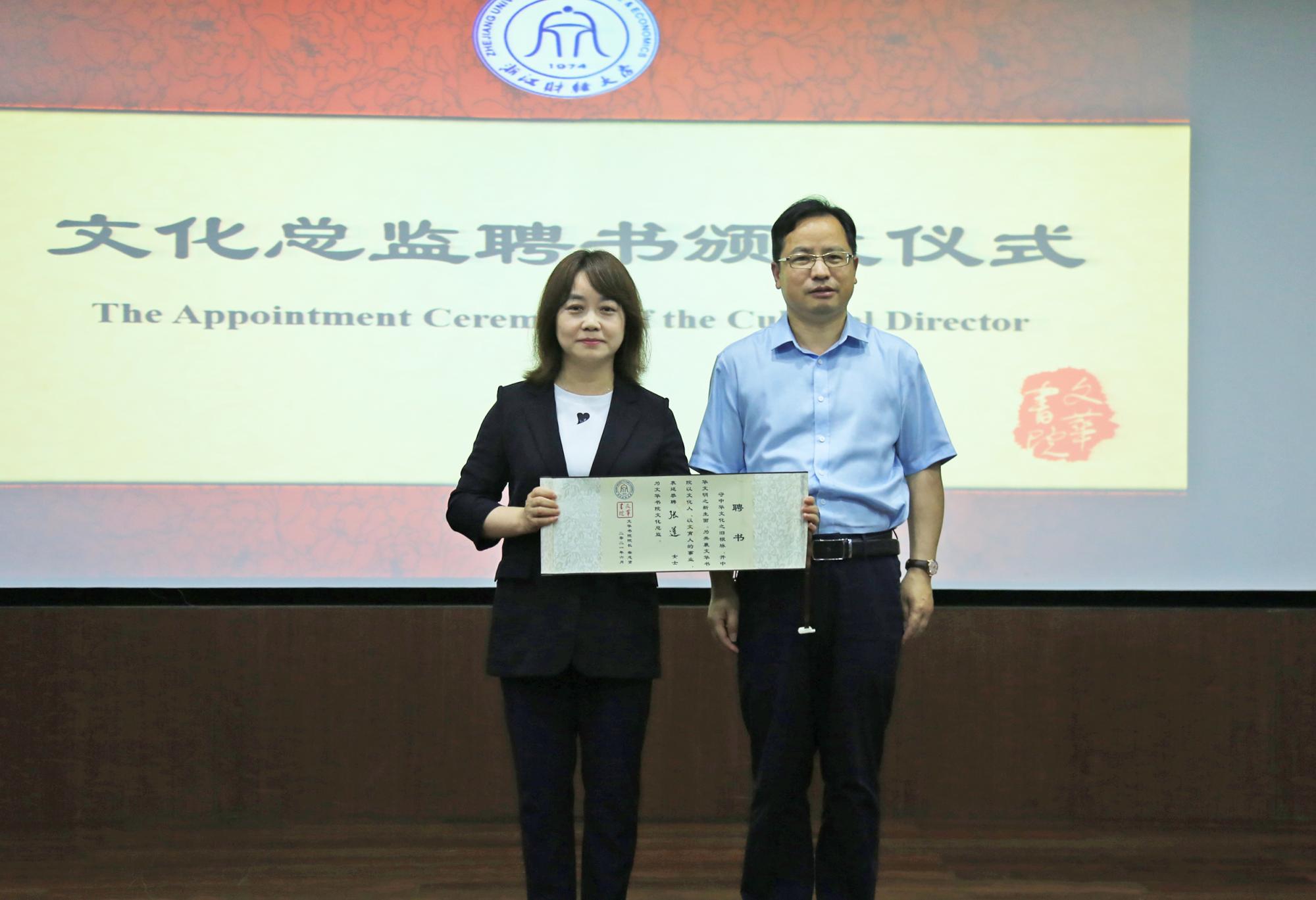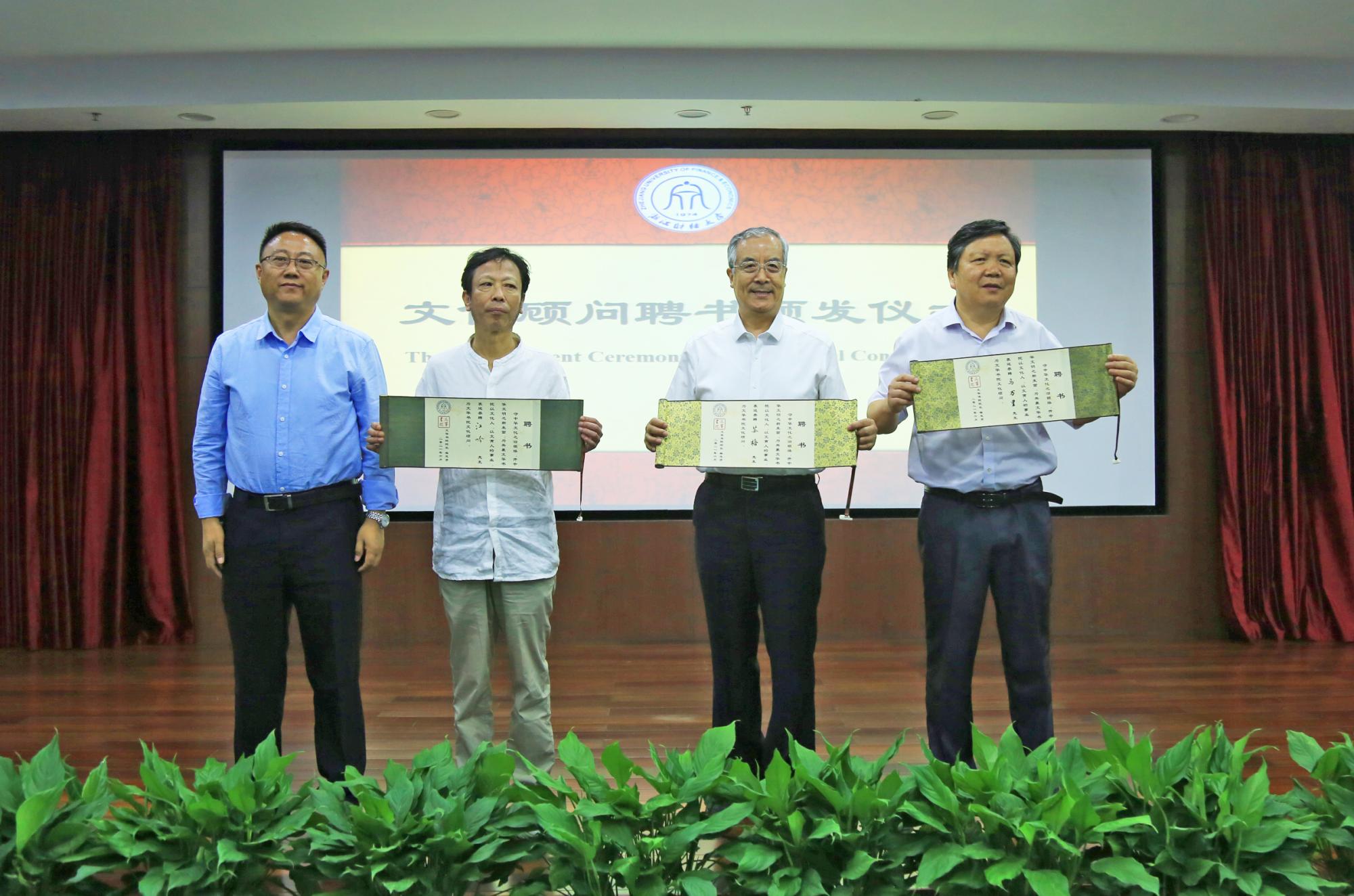 随后,李占荣副校长、楼胆群部长、王聪聪处长以及柴志贤副院长为到场的文化顾问、文化总监、文化导师颁发了聘书。