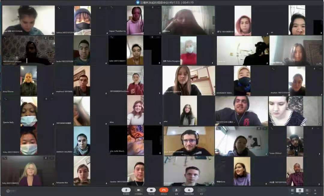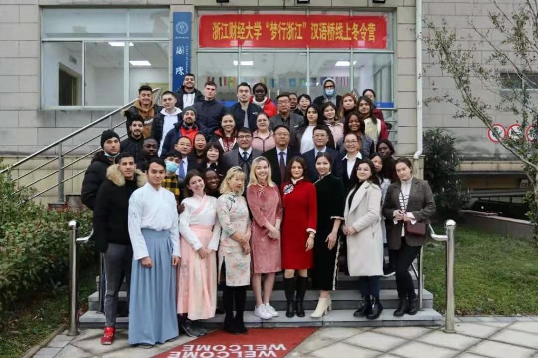 部分留学生,和线上110多名冬令营学员,共同参加开营仪式,直播厅内外热烈互动,共祝本次“梦行浙江”汉语桥线上冬令营圆满成功。
