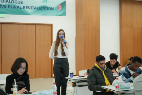 国际学生ABRAMOVA ANNA、BAKHROMOV EKHSONBEK主动分享感受,给中国乡村点赞,并就乡村发展中的热点问题展开了热烈讨论。大家表示很开心此次能来这里学习,期待更多机会深度参与到中国乡村发展中,贡献国际青年力量。