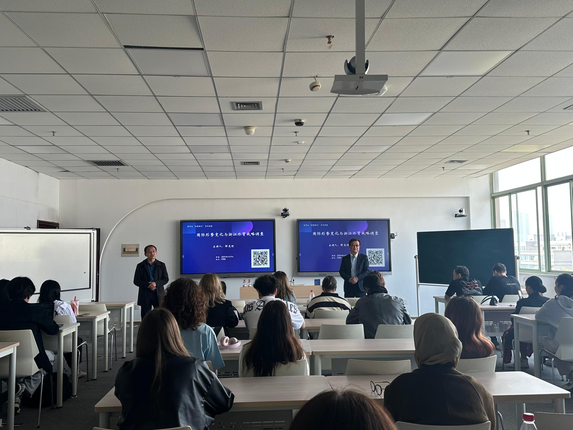 为留学生作了题为“国际形势变化与浙江外贸战略调整”的专题讲座,近五十名留学生参加了讲座。