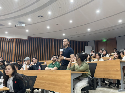 在吉利学堂,吉利校园华东大区经理甘晓霞、运营经理聂剑君分别为师生们介绍了吉利控股集团的主要业务,如吉利乘用车、新能源商用车、智能化、新能源化的技术路线等,并重点介绍了公司的活动技术创新、管理创新和文化创新,以及吉利目前的实习、就业岗位需求情况,并提到吉利集团十分欢迎跨文化背景的留学生求职。