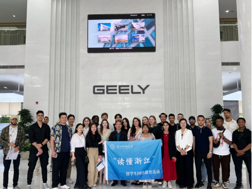 5月7日下午,我院同外国语学院组织百余名中外学生赴浙江吉利控股集团总部参观学习。