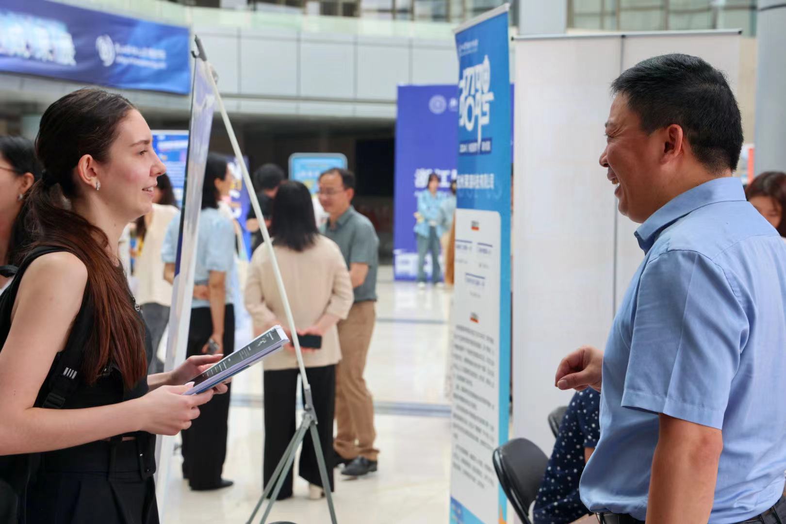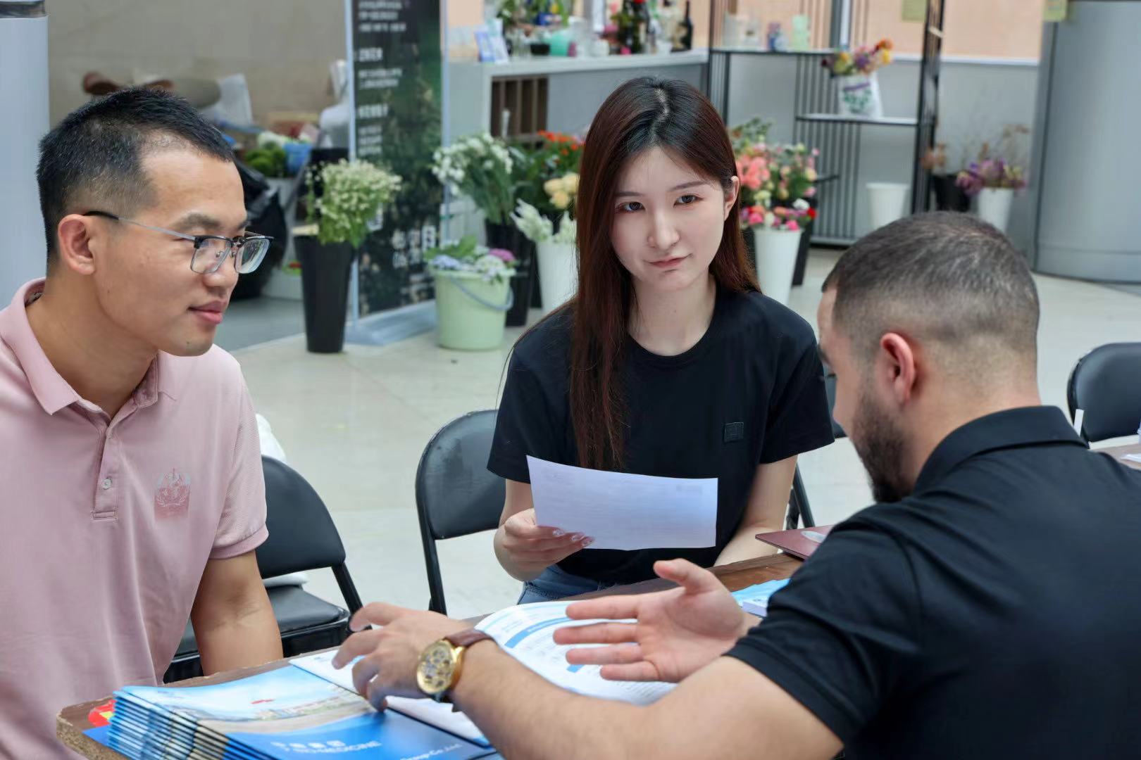 来自乌兹别克斯坦的留学生Ekhson,本科是商务英语专业,目前在读汉语国际教育研究生,他说“中国的工作机会非常好,老师们也特别关心我,我很想留在这里工作。我会中英俄乌四门语言,又非常了解中国文化,还懂商务知识,国际化是我最大的优势。”在这次招聘会上,Ekhson已经成功与一家知名跨国企业签订了合同,马上飞往俄罗斯参加国际展会。