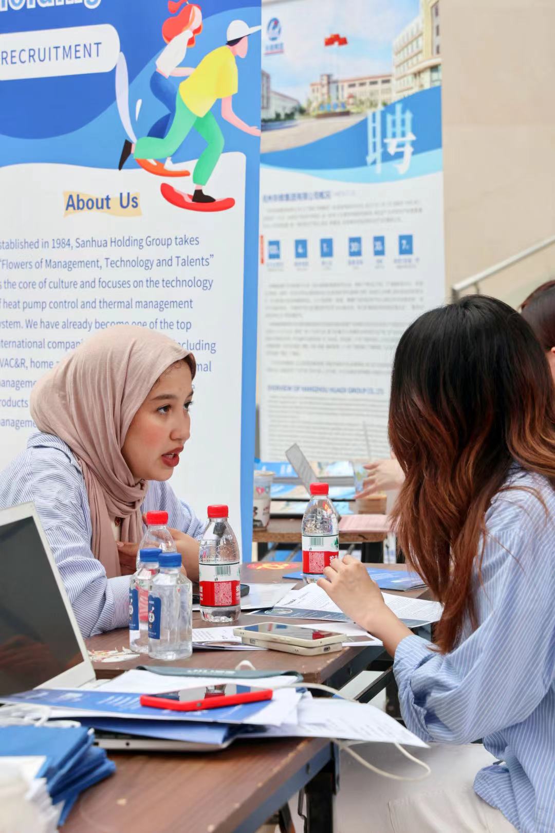招聘会吸引了中国电信、三花控股集团、吉利汽车、浙江正凯集团、杭州华缔集团、长龙航空、新东方等30余家用人单位,有世界500强企业,也有上市公司,为学生提供外贸销售、跨境电商运营、培训教师等300多个就业和实习岗位。三花控股集团倪经理介绍,“公司近年来国际业务发展迅速,在多个国家地区设立了海外公司,急需大量懂技术、会外语、擅管理的复合型人才,外国语学院和日本做爱