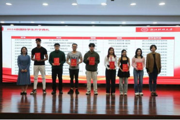 本次开学典礼上对获得2023-2024学年国际学生单项奖学金、2023-2024学年浙江省政府来华留学生奖学金、2024-2025学年国际学生特等奖学金的国际学生进行了表彰,勉励获奖学生再接再厉、勇创佳绩,也为2024级国际学生新生树立了奋进榜样。