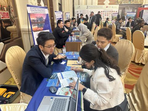 来华留学招生项目,通过宣讲介绍、资料展示、互动答疑等方式向前来参观的国际学生、海外高校代表、教育机构等人员详细介绍了学校的办学理念、区位优势、特色专业、奖学金政策以及申请流程等,与来自泰国、印度尼西亚、老挝、阿尔及利亚、坦桑尼亚等国家的院校与机构代表进行了20余场一对一线下洽谈,并互换联系方式,以期更好推进后续合作。