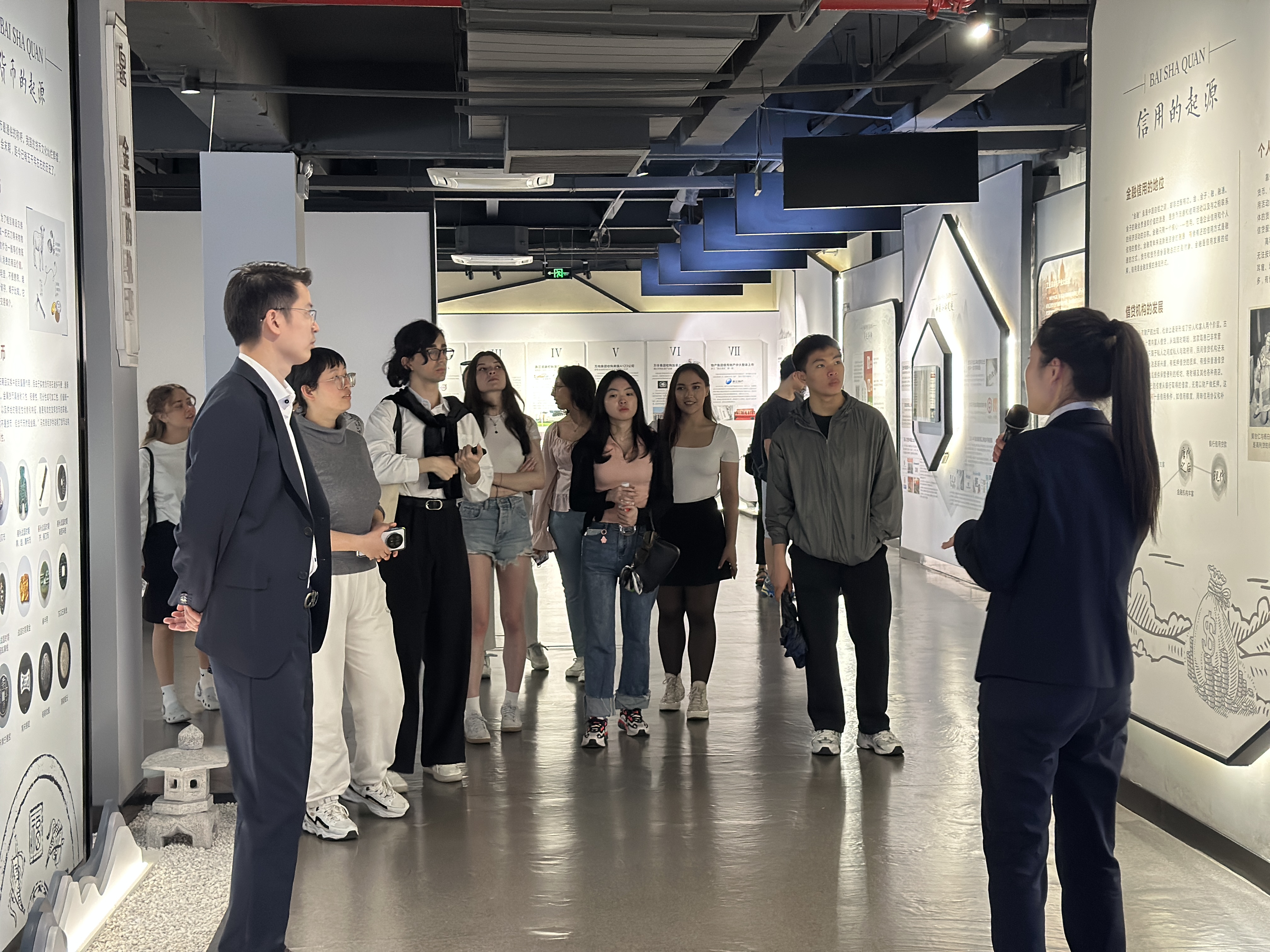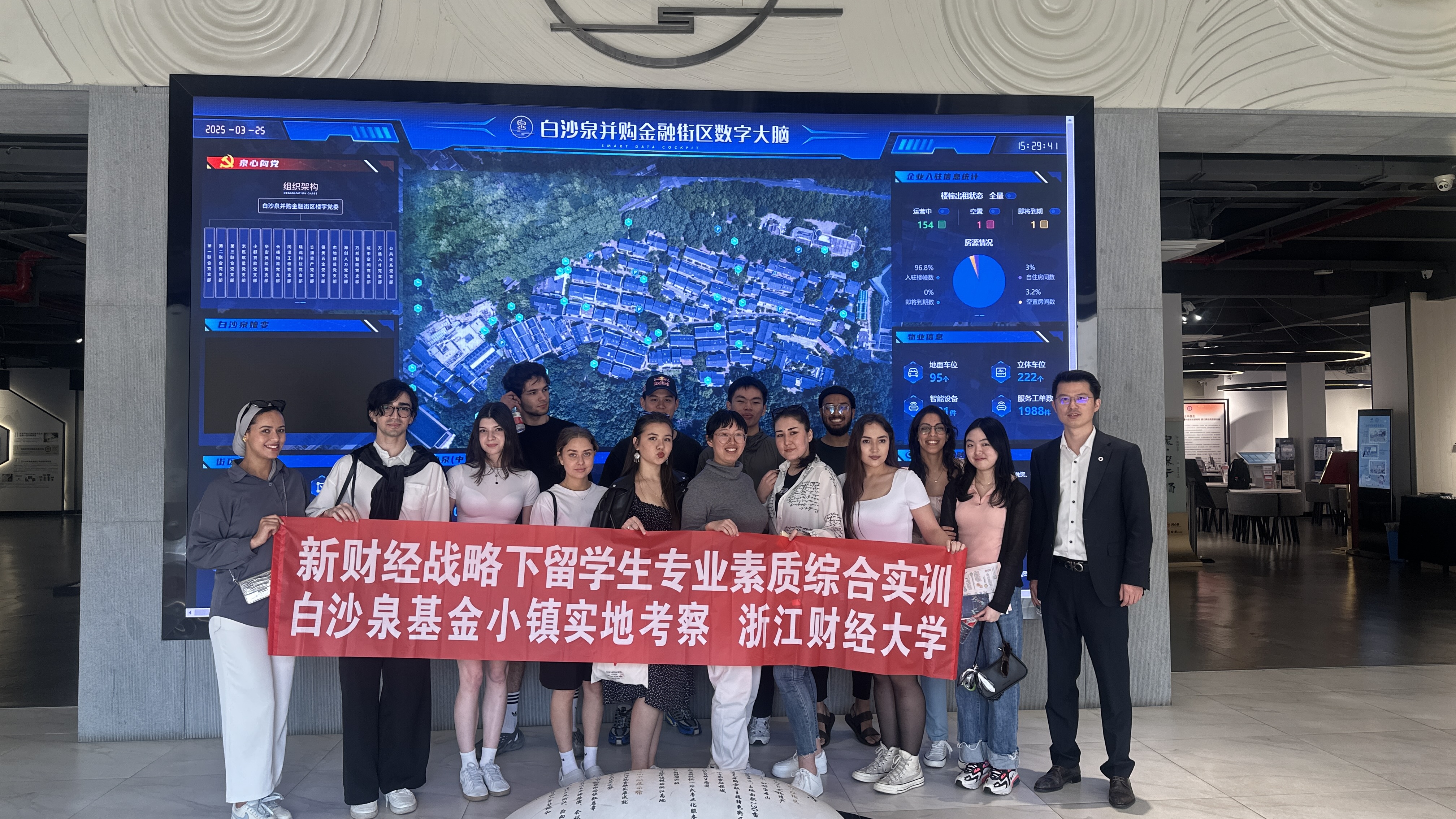 作为国内首个以并购为主题的金融街区,白沙泉基金小镇汇聚了500余家投资机构,成为浙江金融改革创新的重要窗口。现场,留学生们借助数字沙盘、历史长廊和实时数据大屏,系统了解了中国并购市场的发展历程以及浙江特色产业资本运作模式,为本次实训活动奠定了坚实的理论基础。