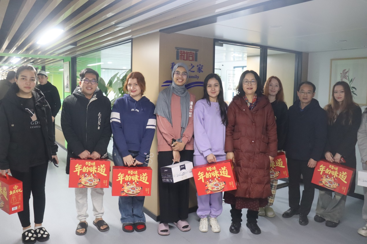 1月20日,副校长郑亚莉来到桃李苑留学生公寓“和合之家”,看望慰问寒假在校留学生。