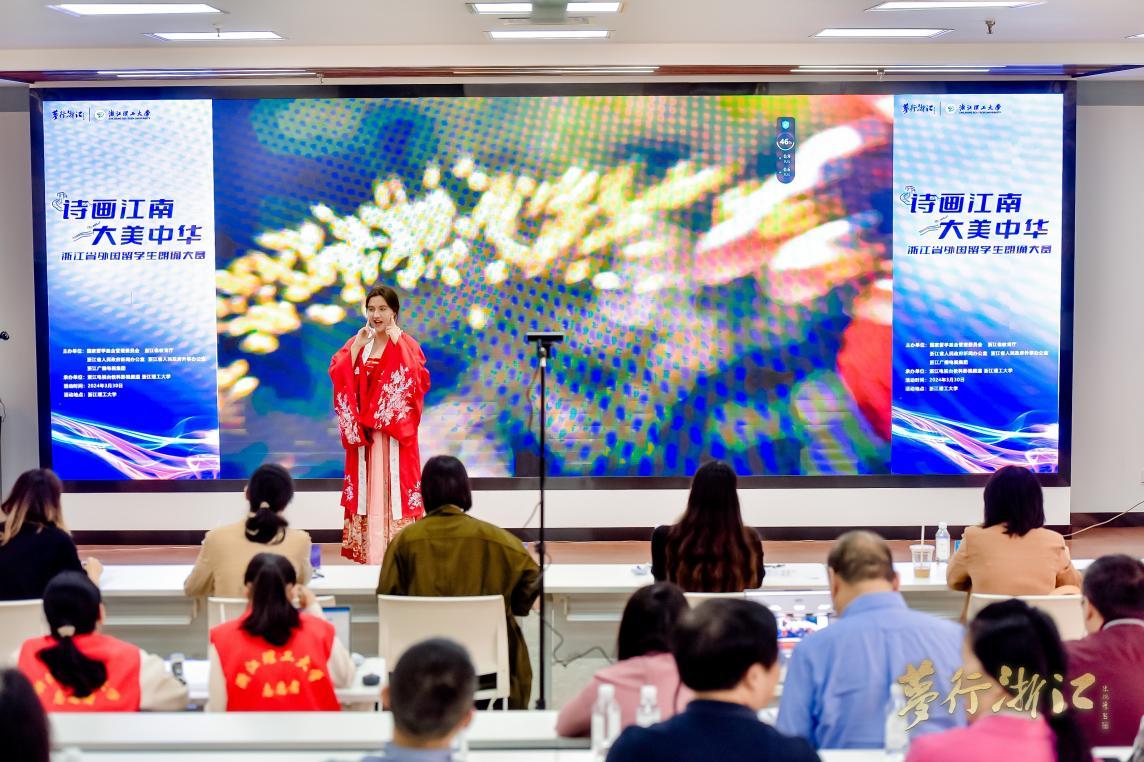 本次大赛由国家留学基金管理委员会、省教育厅、省政府新闻办、省外办、省广播电视集团联合举办,以“诗画江南、大美中华”为主题,旨在通过朗诵中国经典古文、诗词以及现当代诗歌散文,让留学生们更深入地领略中国江南文化的韵味,感受中华诗歌的魅力,弘扬中华文化。来自全省40余所高校的三百余名外国留学生参与角逐,参赛规模创历史新高,比赛最终决出一等奖3项、二等奖6项、三等奖10项。