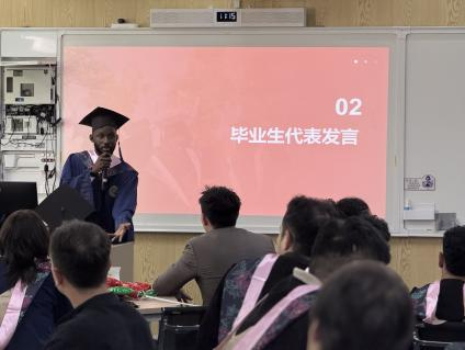 领导、留学生辅导员、全体毕业生们齐聚一堂,共话离别情,共绘未来梦。会上,柴志贤院长对国际学生们顺利完成学业表示热烈祝贺,并回顾了他们在校期间的点点滴滴,从初次踏入校园的懵懂好奇,到如今即将扬帆远航的成熟自信,每一步成长都凝聚着他们的汗水与努力。