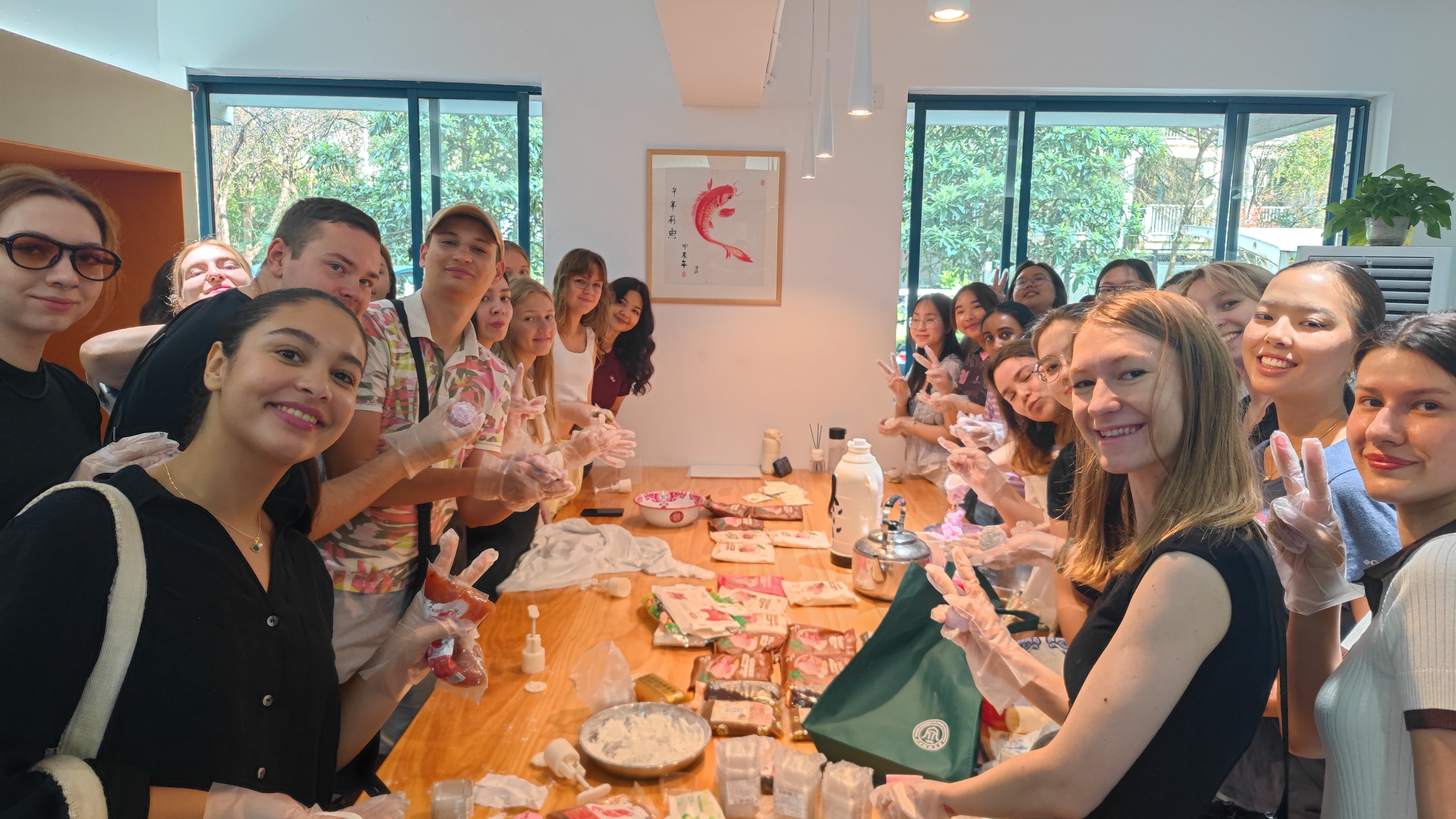 在老师们的耐心指导下,留学生们兴致勃勃地投入到冰皮月饼的制作中。从揉制饼皮、称量馅料,到压模成型,每一个步骤都充满了新奇与乐趣。当一个个印有精美图案、晶莹剔透的冰皮月饼在自己手中诞生时,留学生们脸上无不洋溢着自豪与喜悦的笑容。