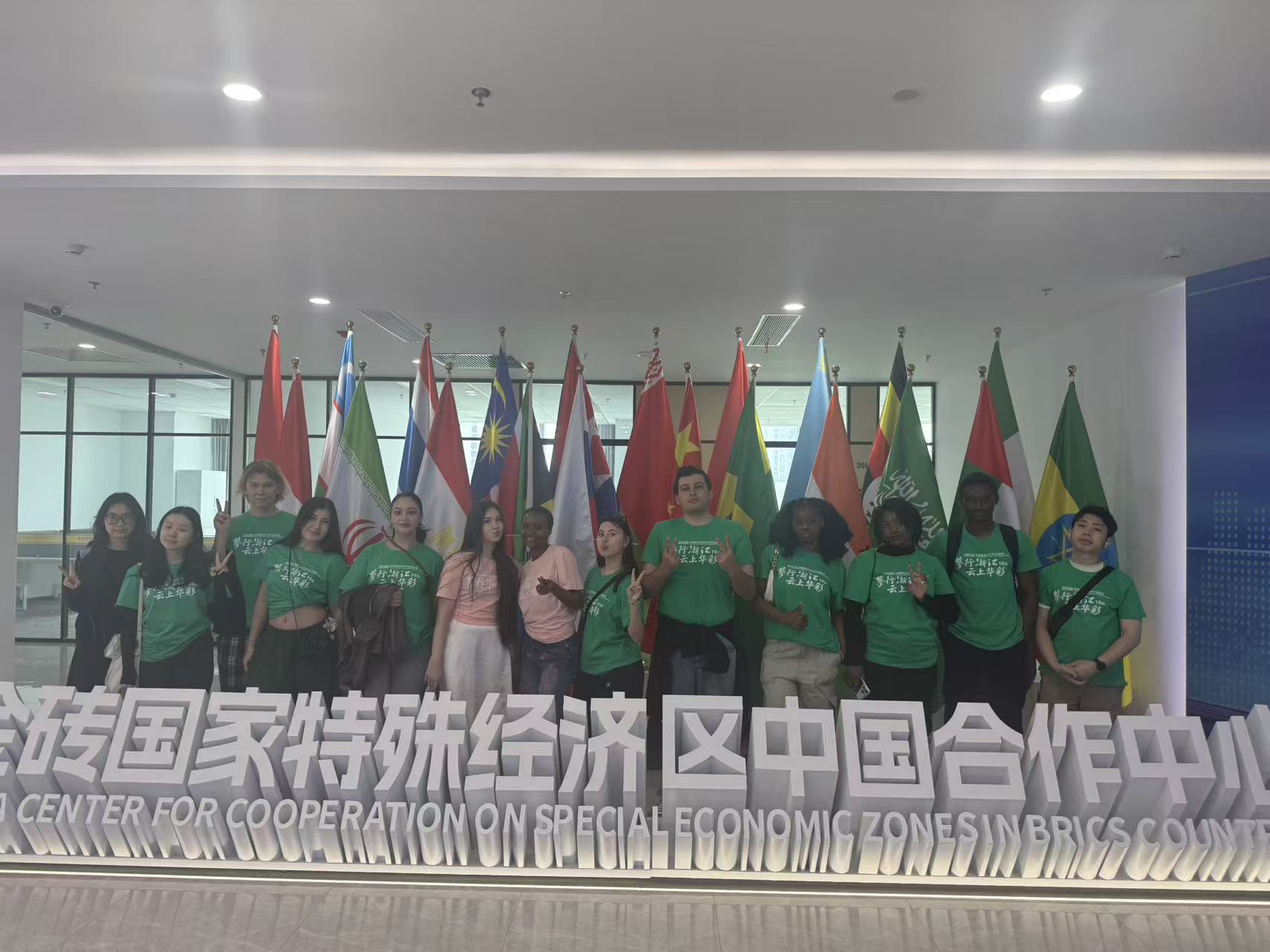 作为“梦行浙江”系列活动之一,参演留学生于次日在老师带领下,与省内其他高校的外国留学生共同前往浙江省外国留学生教育基地,参访了金砖国家特殊经济区中国合作中心和东沙湖公园。参观中,留学生们深入了解浙江经济发展与生态文明建设,通过国际交流增进友谊与文化理解。