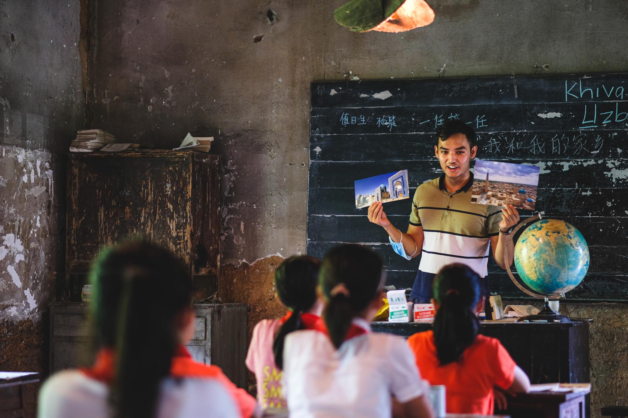 的留学生们给当地的小学生们上了一堂主题为《我和我的家乡》的文化交流课。课后支部党员们给孩子们送上了文具和《毛泽东青少年时代的故事》、《了不起的中华文明》等书籍。