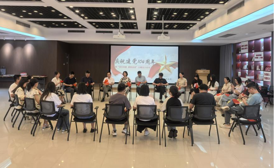 为庆祝中国共产党成立104周年,深入贯彻中央八项规定精神学习教育,全面落实学校"使命文化年"系列活动精神,7月1日下午,国教创党总支在学校党群服务中心隆重举行庆祝建党104周年暨"崇实创新 感恩奋进"主题党日活动,国教创党总支全体党员、入党积极分子参加。
