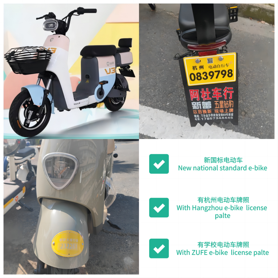 According to the related requirements, all the prohibited e-Bikes are not allowed to enter or park in campus and dormitory area as of today. (Prohibited e-Bikes include the e-bike without Hangzhou license plate, the e-bike have been illegally retrofitted, the e-bike exceed new national standard and the e-bike without ZUFE e-bike license plate).