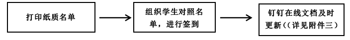 3.线下授课的老师:利用纸质版课程考勤名单进行签到,并在课程考勤名单(钉钉在线文档)中及时更新。