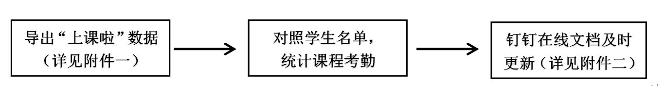 任课教师作为课堂考勤的第一责任人,应严格落实课堂考勤制度,认真做好考勤记录,及时汇总考勤情况,定期公布考勤结果。各任课教师要根据课程实际情况,采取“上课啦”点名、课堂提问、布置作业等多种形式进行考勤,并在课程考勤名单(钉钉在线文档)中及时更新,保证考勤数据的客观性和准确性。