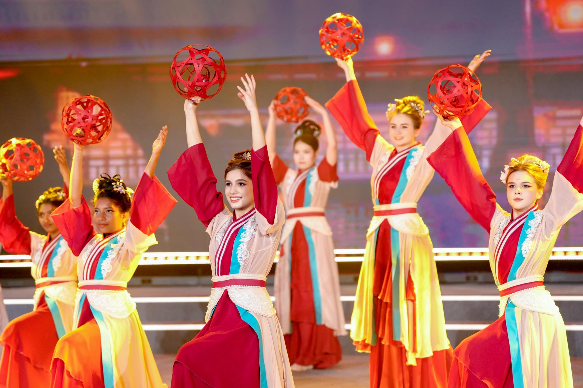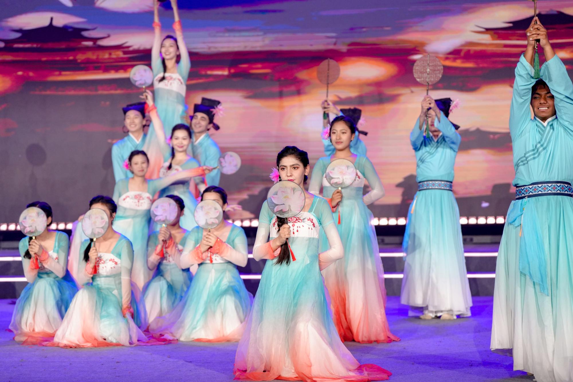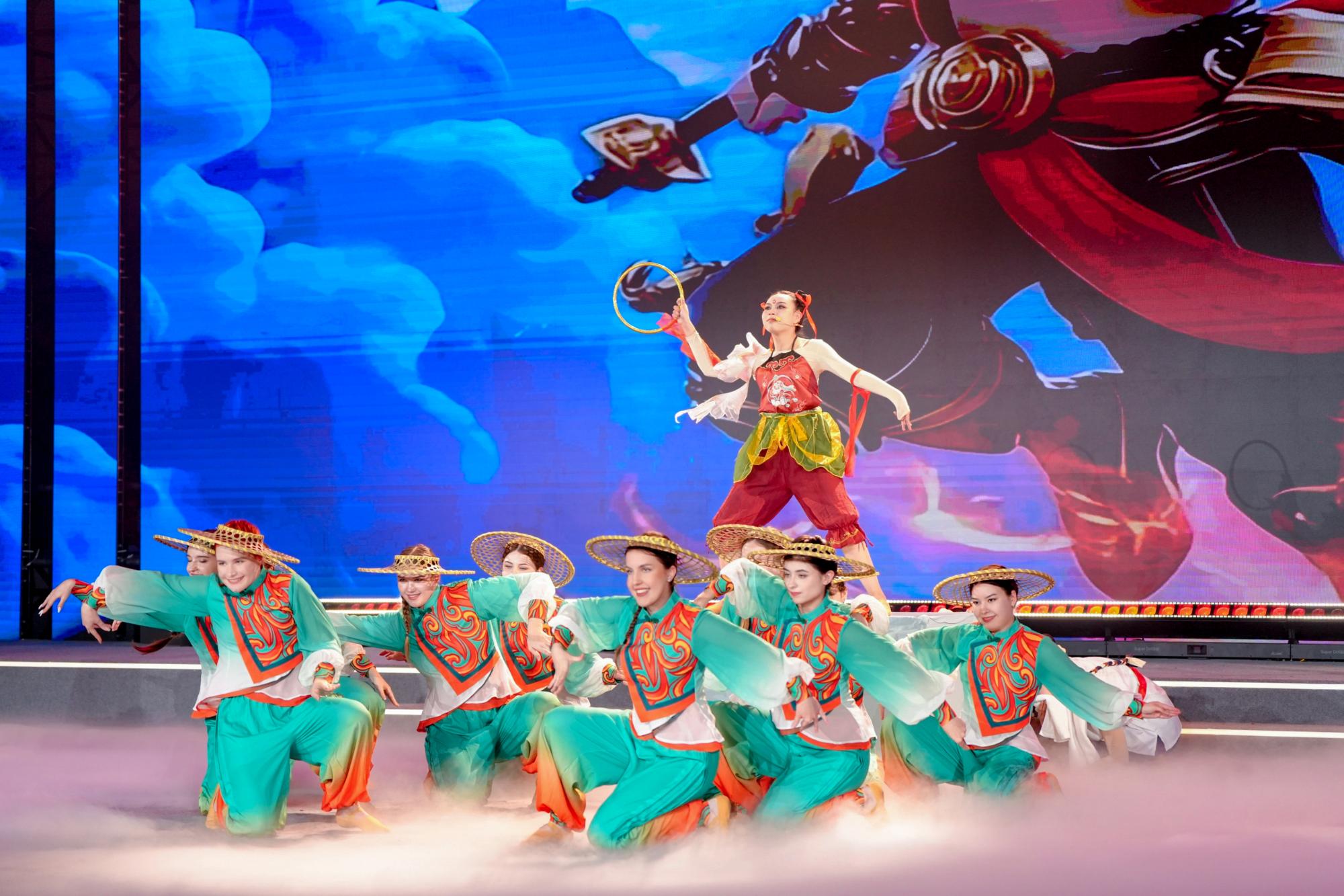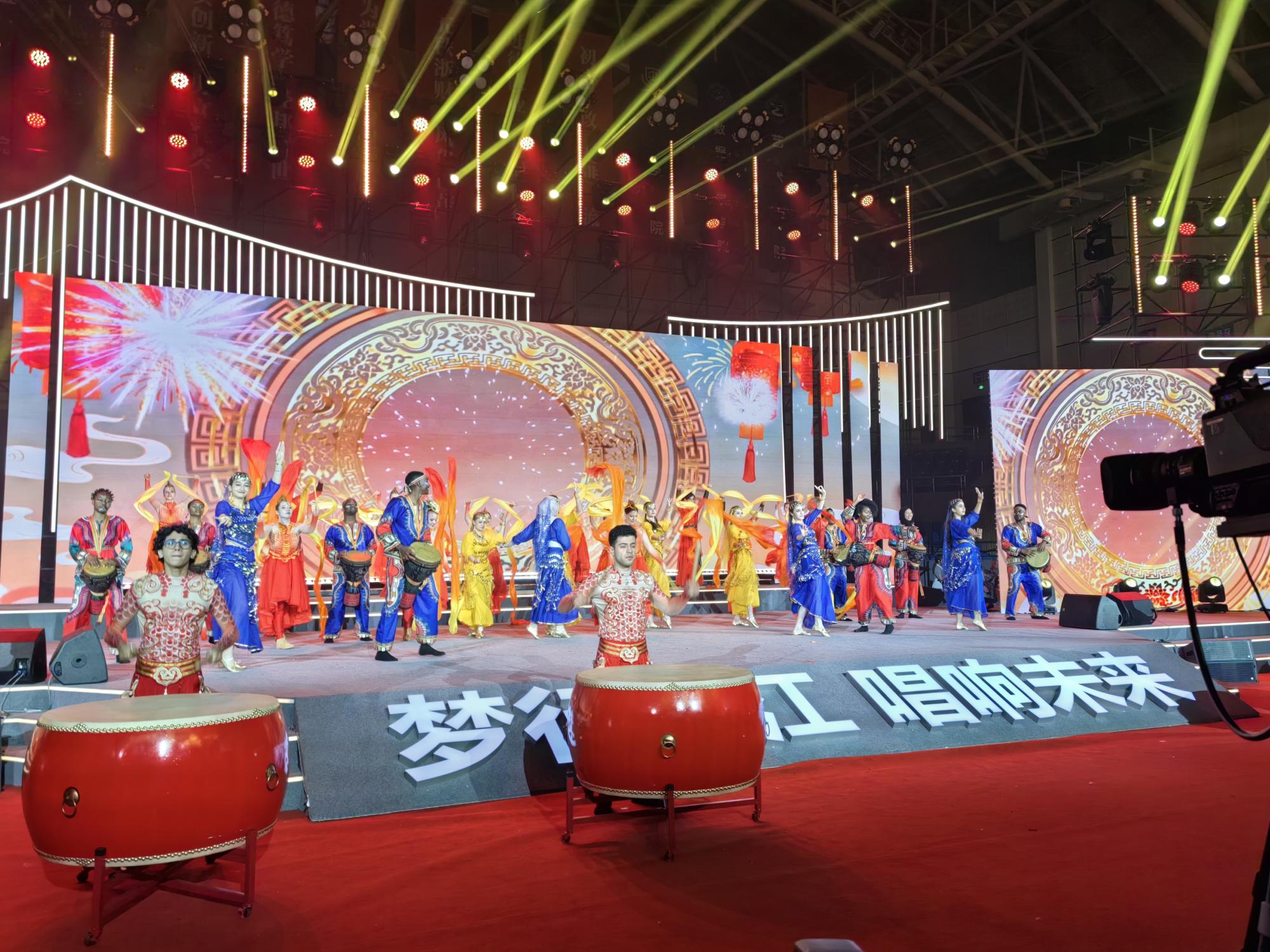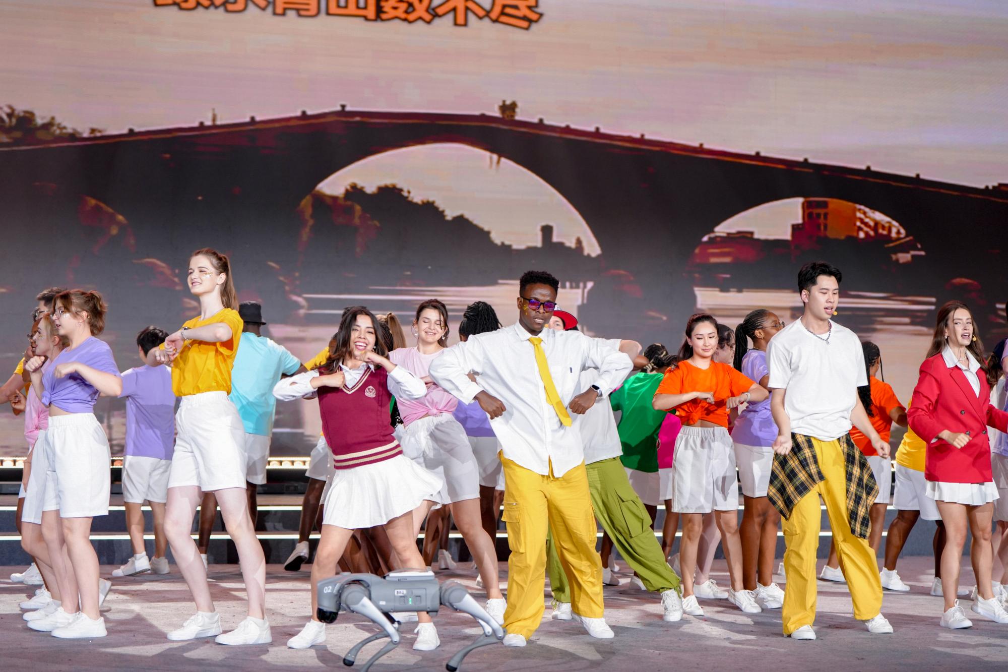 来自浙江大学等18所高校的500余名留学生共参演16个节目。来自俄罗斯、意大利、孟加拉国、土耳其等国家的留学生们通过歌舞、情景剧表演等形式讲述了留学中国的精彩故事,从他们的视角演绎了哪吒、花木兰等中华文化形象,机器人、机器狗与留学生同台演出,惊艳全场,赢得了观众的阵阵喝彩。