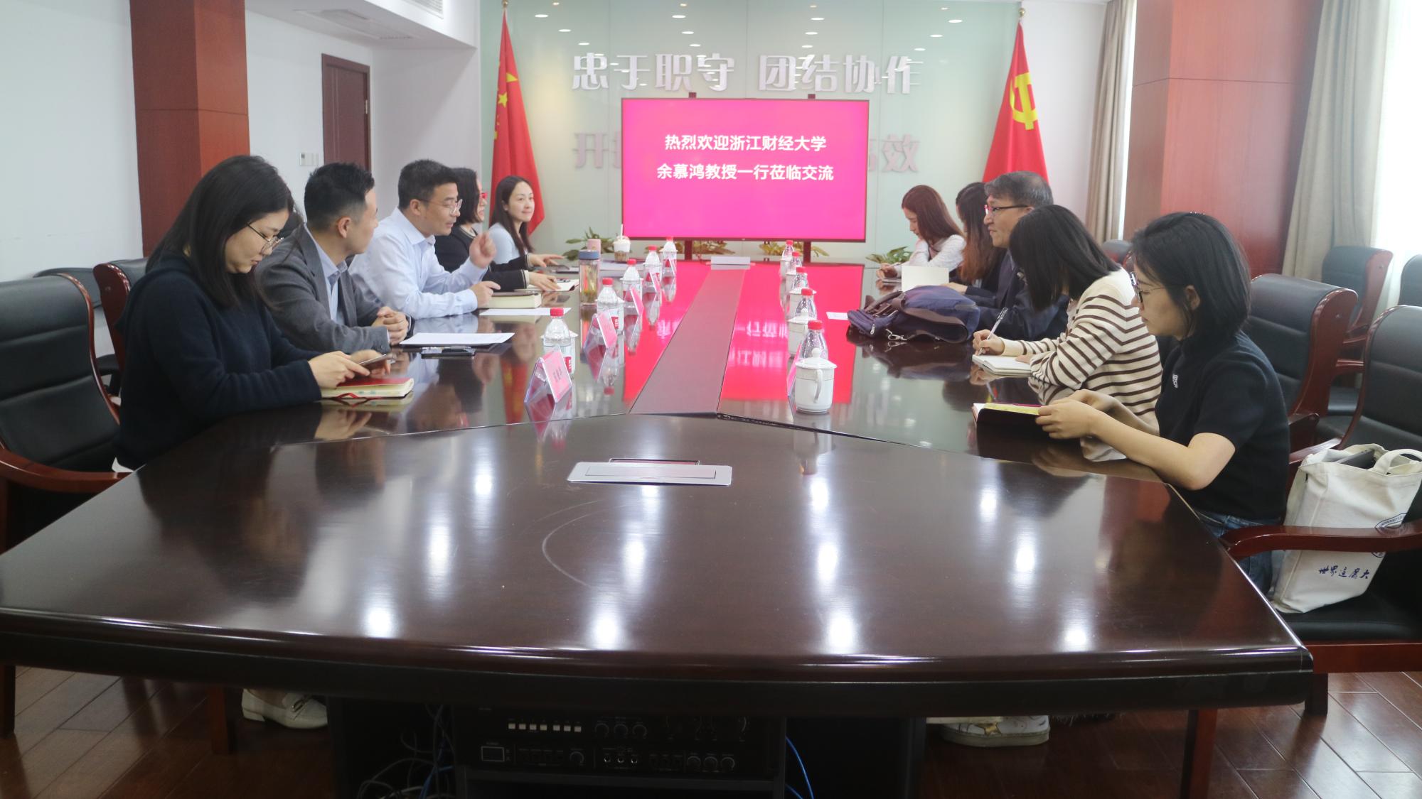 交流伊始,周建华主任首先对余教授一行的到来表示欢迎。随后,他简要介绍了浙江省投资促进中心的创建背景、使命任务、发展历程以及亟待开拓创新的专业领域,并愿意通过双方的交流合作,共建科研平台,打造有利于“一带一路”建设、推进我省“地瓜经济”发展的营商环境和投资工作评价体系。